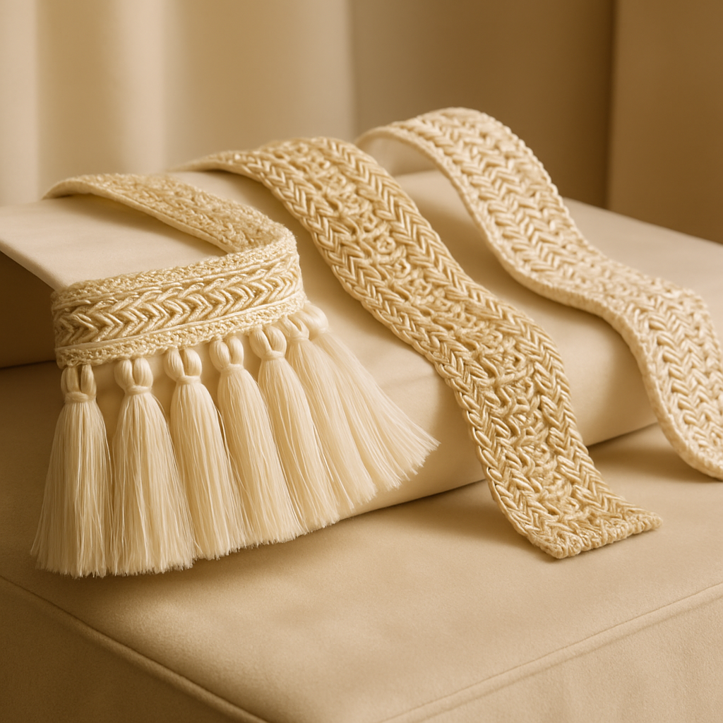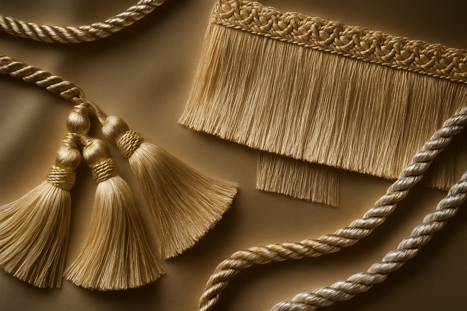 Aspiramos a ser a referência internacional em passamanarias e decoração têxtil de luxo, oferecendo uma coleção distinta de franjas e galões em algodão, rayon e filamento. Cada peça é desenhada para elevar colchas, cortinas e projetos criativos, conferindo uma elegância intemporal e um toque de história.